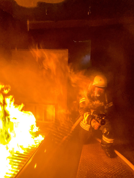 Unsere Atemschutzgeräteträger waren am 22.07.2025 bei der Feuerwehr Neckargemünd und absolvierten eine Übung in der mobilen Brandübungsanlage der Netze BW.