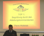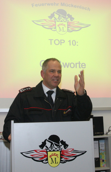 Bei einer gut besuchten Hauptversammlung der Mückenlocher Abteilungswehr konnte Kommandant Pierre Wallstab, vier Ortschaftsräte, den amtierenden Stadtbrandmeister Frank Merkel, Ehrenkommandant Walter Kirchner und die Mitglieder der Alterswehr begrüßen. Als Vetretung für Ortsvorsteher Bergsträsser nahm Ute Kaltschmidt an der Veranstaltung teil. Nach dem Totengedenken erstattete Pierre Wallstab Rechenschaft über sein zweites Amtsjahr, aus dem zu erkennen war, dass sich die Wehr weiter sichtlich stabilisiert hat und dass eine gewisse Ausgeglichenheit und Harmonie unter den Aktiven eingekehrt ist.