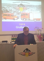 Auch die Grußworte von Ortsvorsteher Bergsträsser fielen wieder durchweg positiv für die Wehrleute aus. Er sei ebenfalls erfreut darüber das sich die Abteilungswehr so entwickelt hat und durch die Mückenlocher Bevölkerung so vielseitig unterstützt wird. Auch bei den vergangenen Unwettereinsätzen habe man wieder gesehen, wie wichtig die Feuerwehr doch ist, so Joachim Bergsträsser.