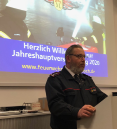 Nach dem Totengedenken mit Erinnerung an den Tod von Kurt Pfitzenmayer erstattete Pierre Wallstab Rechenschaft über sein sein sechstes Amtsjahr. Mit 81 Einsätzen darunter 45 Einsätze im Tagalarm erwies sich 2019 als einsatzreiches Jahr für die Freiwilligen. Als besondere Einsätze erwähnte der Kommandant den Gebäudebrand im Juni in Neckargemünd sowie den Brand in Mückenloch in der Almstraße im Dezember. Die Weihnachtsfeier fand wegen Schließung der Gaststätte „Zur Krone“ im Schulungsraum statt und begann mit einem Einsatz (Türöffnung) und endete mit einem Einsatz (Brand in der Almstraße). Einen Dank sendete Pierre Wallstab an den Förderverein für die Beschaffungen.