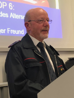 Altersobmann Rüdiger Freund berichtete von den Aktivitäten der Altersmannschaft im letzten Jahr. Freund erinnerte ebenfalls an den Tod von Kurt Pfitzenmayer der 87 Jahre wurde. Auch für dieses Jahr sind die Ausflüge und die alle vierwöchigen Treffen wieder fester Bestandteil im Programm. Er bemerkte das der Altersdurchschnitt bei rund 76 Jahren liege und die Frauenquote bei null. Die Altersmannschaft traf sich insgesamt neun mal im Schulungsraum und zwei mal im Garten vom Ehrenkommandanten Walter Kirchner. Man nahm an Trauerfeiern in Dilsberg und Heiligkreuzsteinach teil. Sein Dank ging an die Kameradinnen und Kameraden sowie die Führung der Abteilung, für die Unterstützung.