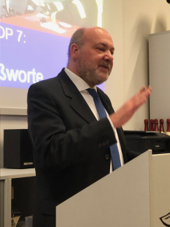 Willy Wallstab als stellv. Ortsvorsteher machte sich vor der Versammlung die Mühe und beschäftigte sich damit welchen Gruß die Feuerwehr hat. Neben den üblichen Grüßen machte er einige Vorschläge wie „Viel Glück und immer Druck auf dem Schlauch oder „Fahr zur Hölle und puste dem Teufel das Feuer aus“. Nach seiner erheiternden Rede wünschte er den Kameradinnen und Kameraden alles Gute und bedankte sich für die geleistete Arbeit.