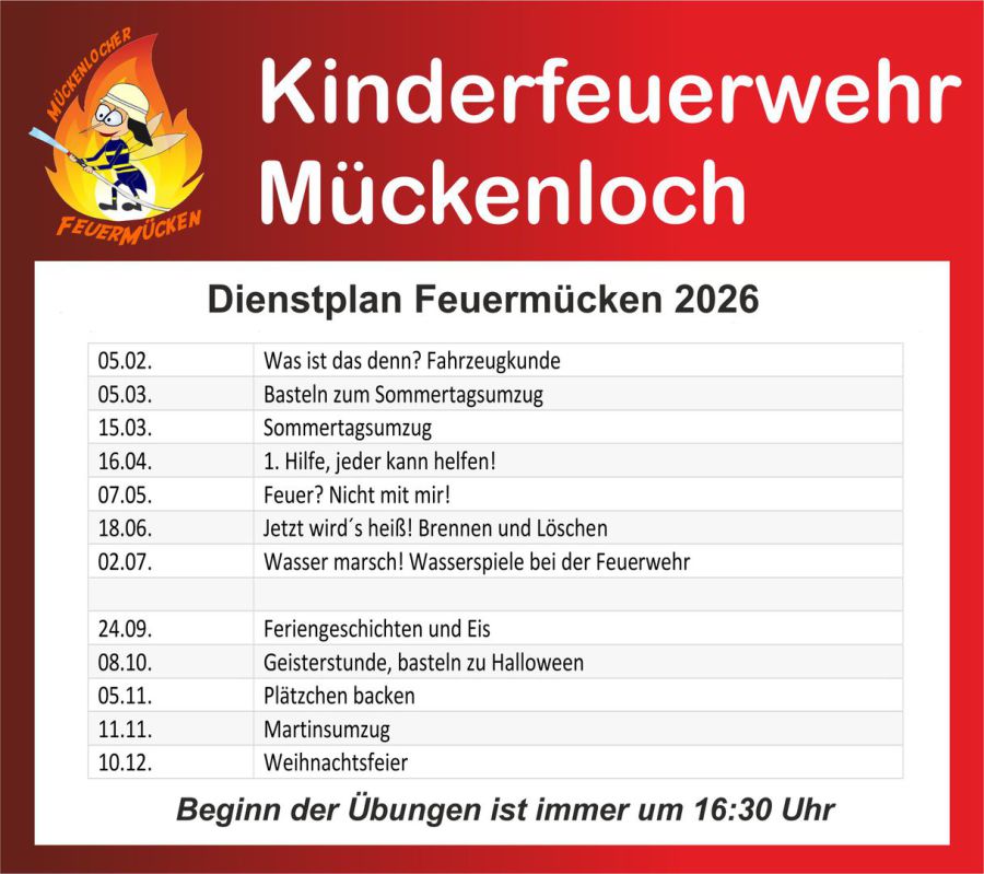 Wenn Ihr Kind Interesse an unserer "Kinderfeuerwehr" hat, kommen Sie doch einfach an diesen Übungstagen bei uns vorbei.